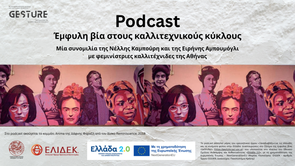Το έργο «Ξαναδιαβάζοντας τις σπουδές και τα κινήματα φύλου στην Ελλάδα: Διασταυρώσεις στο ζήτημα της έμφυλης βίας (GeStuRe)» υλοποιείται στο πλαίσιο του Εθνικού Σχεδίου Ανάκαμψης και Ανθεκτικότητας «Ελλάδα 2.0», με τη χρηματοδότηση της Ευρωπαϊκής Ένωσης – NextGenerationEU (Φορέας Υλοποίησης: ΕΛΙΔΕΚ – Αριθμός Έργου 015369, Δικαιούχος: Πανεπιστήμιο Κρήτης)